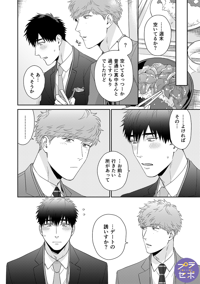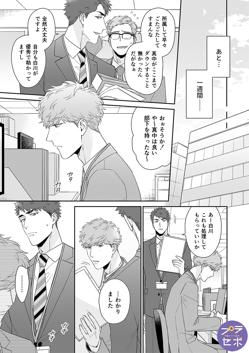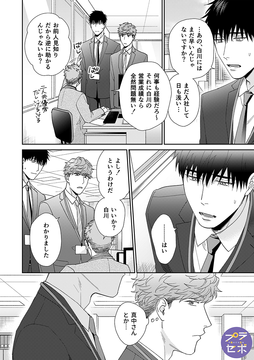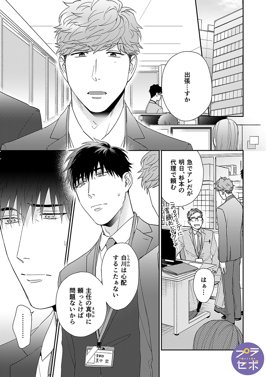 ドライな新入社員の白川は、同僚の代理で訪れた出張先で、予約ミスにより上司の真中と一晩過ごすことに。